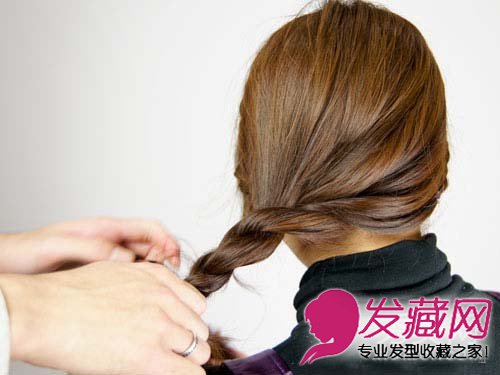 把背后头发均分成两部分,然后缠绕起来,如图做法。