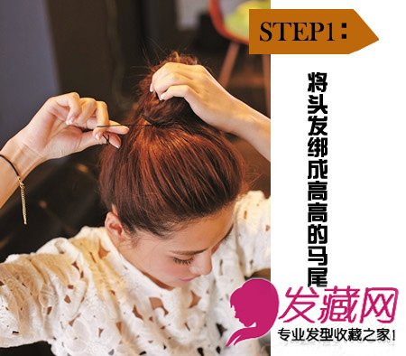 step1:先将所有的头发绑成一个高位马尾。调整下位置让马尾看起来更自然。