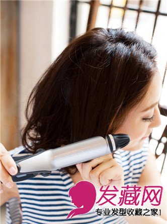 1、首先为了增加甜美感,用卷发棒将头发弄卷曲。