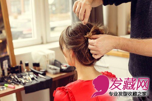 再将发尾向上盘起,用发夹固定发根。最后将两侧的头发向中间汇集,注意,发丝不需要过于拘谨和生硬,自然就可以了,用发夹固定好造型即可完成。