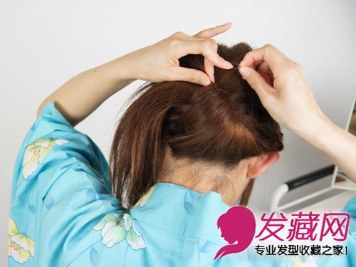 最红在扭曲那里用别针固定好马尾。
