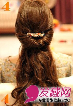 step4:这样的半扎发造型也很好看,这样的公主半扎发适合淑女风的打扮。
