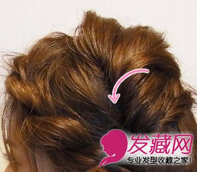 从侧面扭一股头发,嵌入在耳际,如图所示。