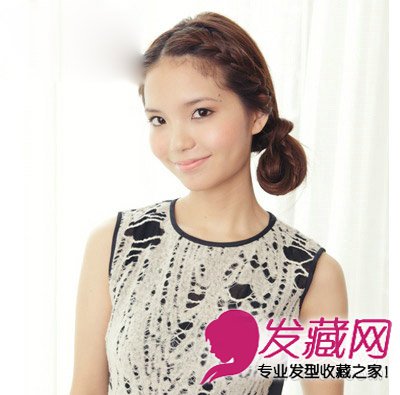 可爱的侧发髻扎发,利落中不失可爱气息,搭配编发元素显得更加时尚。