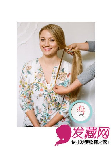 step2:取出一束头发缠绕橡皮筋位置,再用发夹固定发尾。