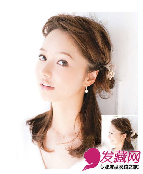 公主花苞头半扎发散发出浪漫的甜美气息,桃花盛开的日子里选择这样的