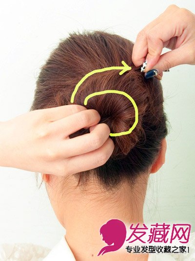 step5:然后将发辫顺时针扭转成丸子头,这是丸子头的扎法最关键的一步哦。