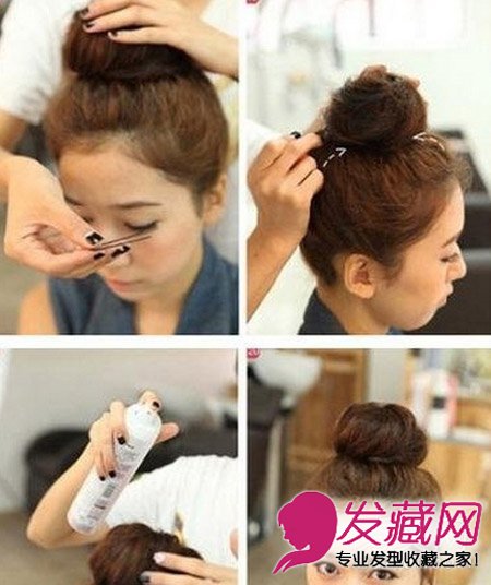 5、最后使用夹子固定好丸子头,喷上适量的发胶来定型就好了。
