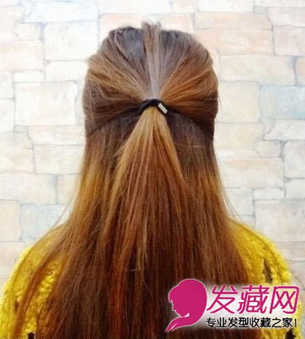 首先用皮筋把头发束成马尾状,发量要一一分,如果你的后脑勺并不饱满,应稍微把马尾束的鼓一点,不要太紧。