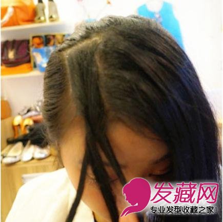 step3:将三等分的头发编成三股辫的第一节,反着向外编。