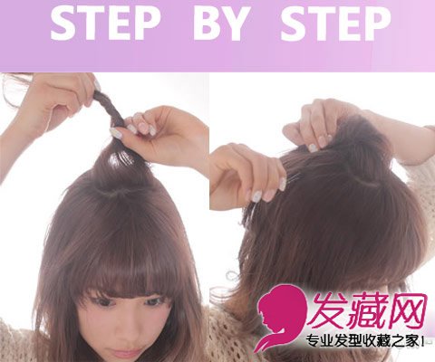 Step5: 用三股编制法编制,然后用发夹固定发尾,并将靠近发根处头发稍稍拱起,使其突出。
