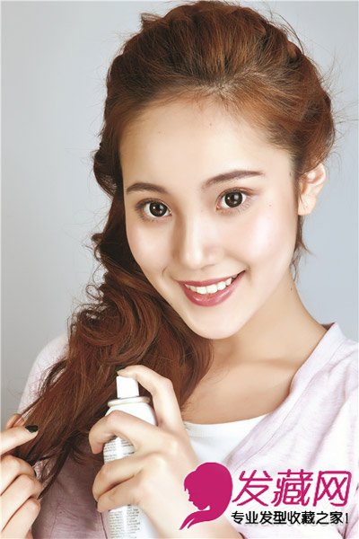 将手指插入头发内,抖动头发,让头发变得更蓬松,最后用发型蓬松喷雾,或者发胶固定即可!