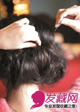 step3:再将马尾向上扭转后用黑色发夹固定起来。这款发型也搞定啦。