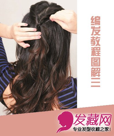 step3:扭转成辫子后拉扯到脑后用发夹固定,另外一边也重复同样步骤。