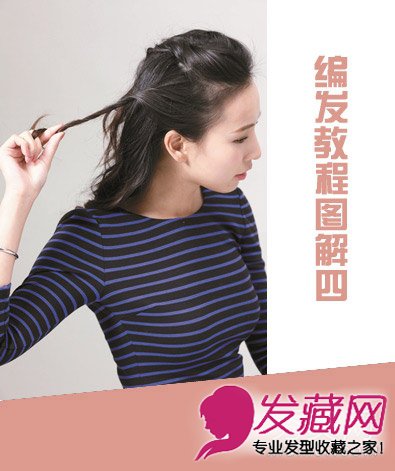 step4:再从扭转的辫子下方取出一束头发,也扭转成发辫。