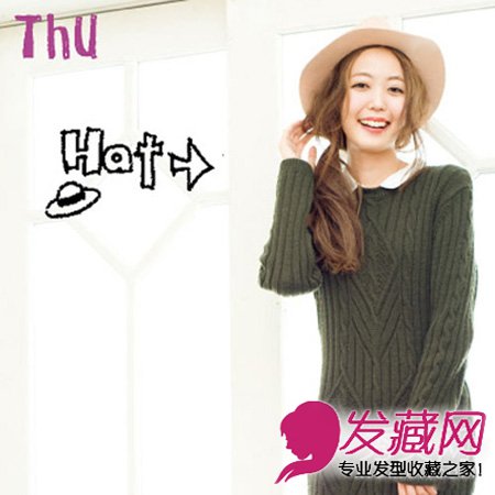 Point:佩戴的帽子帽檐要比较宽。微微散乱的头发是突显女人味的地方。