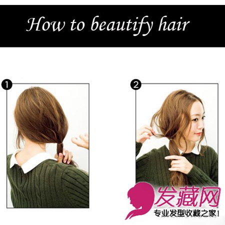 1、所有的头发梳到一侧,在下面离耳朵约5厘米的地方扎起来。让部分松散的头发留在另一侧。