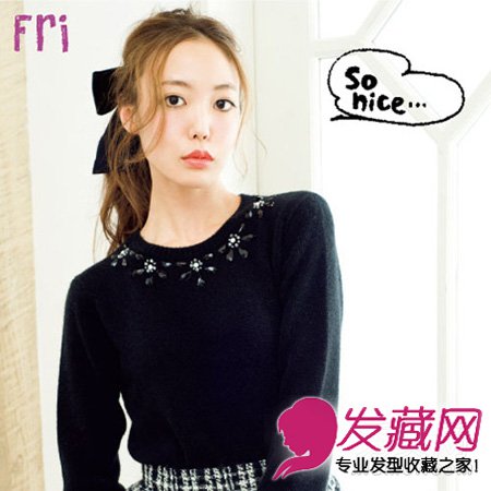 在后面扎上马尾辫显得单调,用一个简单的方法使整个发型与众不同!一个丝带结就可以释放你成熟的少女魅力。