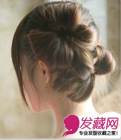 步骤六:按照以上的方法扎好另外三个发髻,形成大小均匀的四个对折发髻。