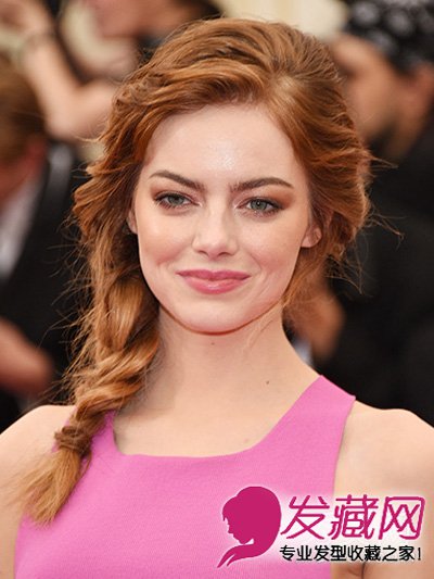 按照常理来讲,Emma Stone的头发长度来打造鱼骨辫似乎有些困难,只要在下完头头发还没有完全干的情况下,就能有这种很分明的效果。