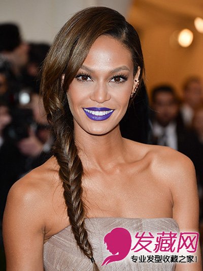 跟深紫色唇膏相比,JOAN SMALLS的这款鱼骨辫恰到好处的衬托了妆容,多了几分俏皮。