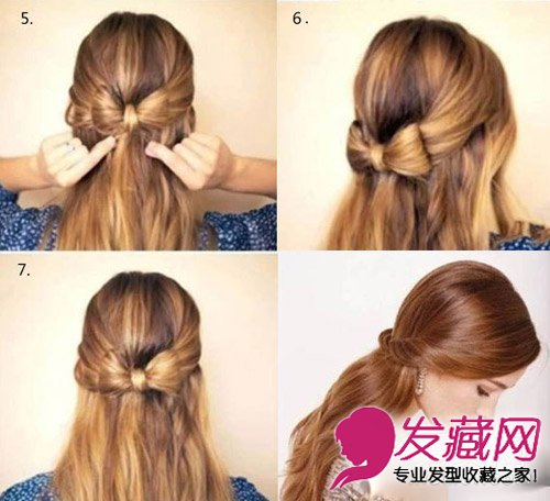 Step5:去适当发量缠绕在皮筋处并用钢卡固定,作为蝴蝶结的花心。