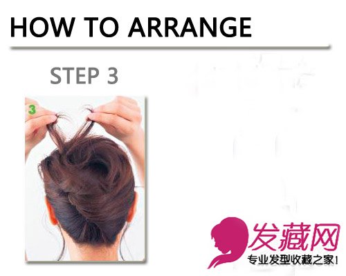 Step 3:在一边别上装饰用的大发夹,把盘好的头发适当抓松,动作用轻一点哦,别把整个造型都弄乱了,最后用定型喷雾定型。