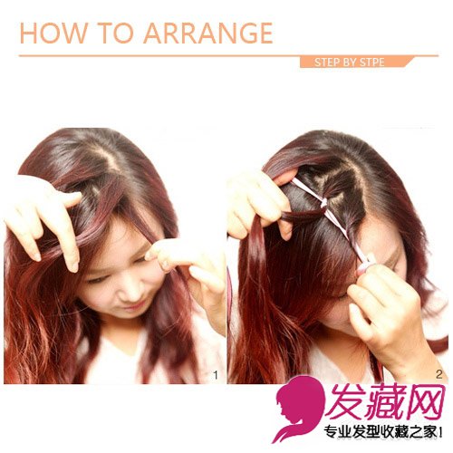 step 1:将头发侧分,在发线附近去三小束头发。