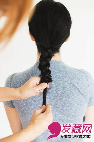 2.然后在发尾处拉住其中一股,将另外两股向上捋起。