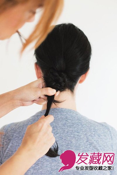 3.将两股头发捋到辫子发根处,找好你想要的位置。