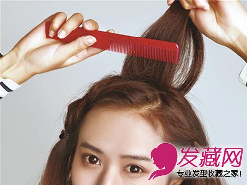 后脑勺区域用梳子倒梳,做饱满处理后,用梳子处理表面碎发。