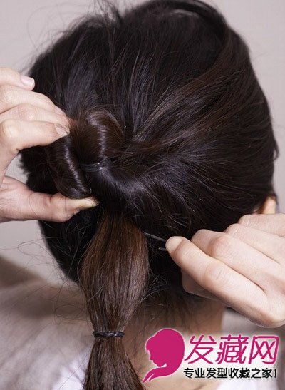 初秋必学露额发型扎法 扭转花苞头有个性(10)