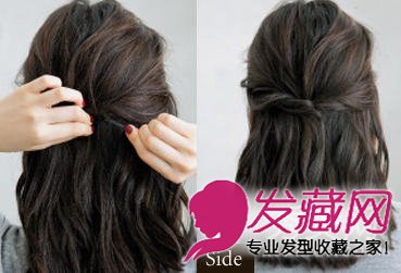 3.用发夹将两侧发束固定,最后用手打理出自然随意的感觉。