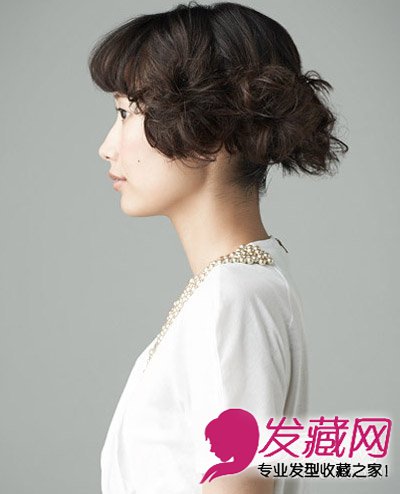 卷发缠绕成多个花苞头造型,露出光洁的脖颈,清爽自然。