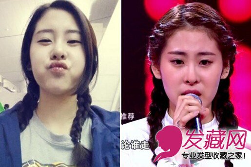 梳麻花辫的,可以是韩剧女主角,是民国女学生,也可以是村里的小芳。下面左图这种梳法,相信你平时不想洗头或者夏天太热的时候也尝试过,萌土一线间,基本全靠脸。但是右图在额头部分稍加变化,时髦度立即up!