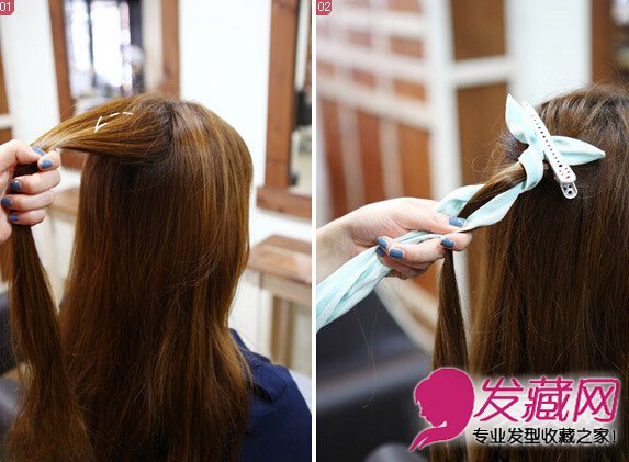 长发编成纹理别致的辫子 超简单头巾编发步骤图解(2)