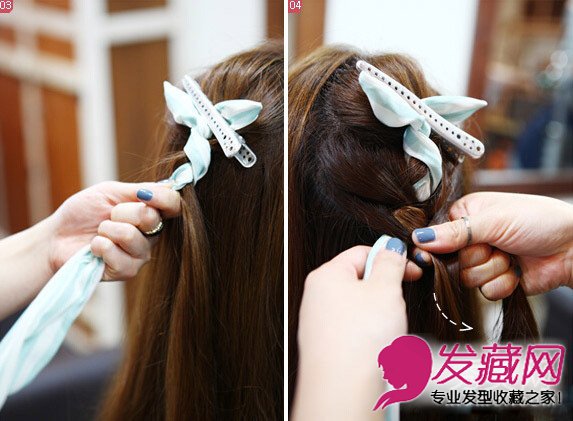 长发编成纹理别致的辫子 超简单头巾编发步骤图解(3)
