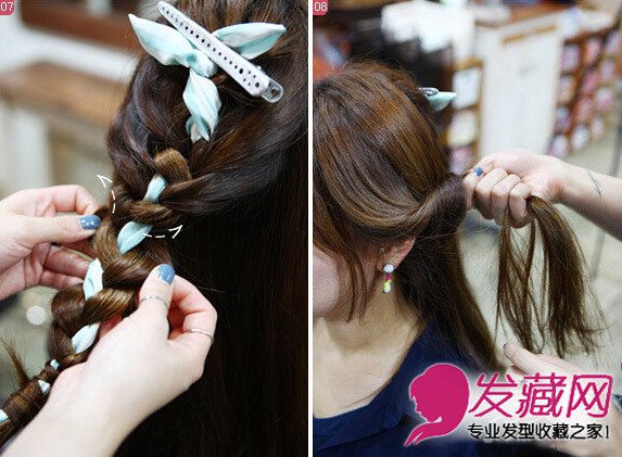 长发编成纹理别致的辫子 超简单头巾编发步骤图解(5)