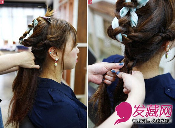 长发编成纹理别致的辫子 超简单头巾编发步骤图解(7)