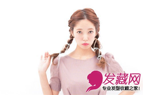 。散开在三股辫中的蝴蝶结是亮点所在。