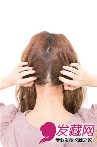 把全部头发粗略分成2部分。分开的发束分别编起来直到耳上位置。