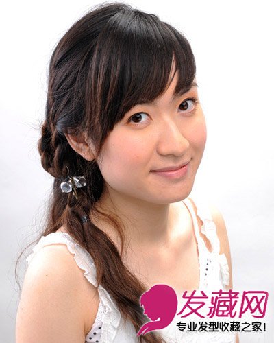 斜刘海修饰脸型 侧编发+发饰甜美淑女