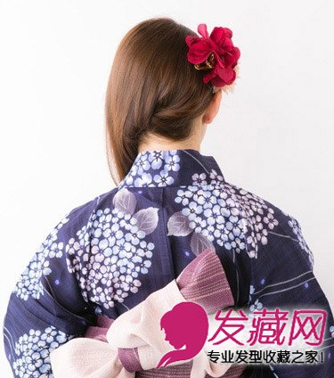 侧面效果:右侧的头发扎起来尽显清爽时尚。发饰点缀更吸睛。