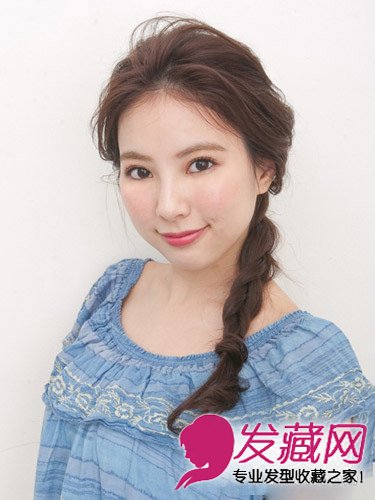 先来看看这款侧边编发效果吧。露出额头的扎发造型稍显蓬松凌乱,蓬松的发丝修饰出完美的头型。侧边编发慵懒随意,唯美动人。