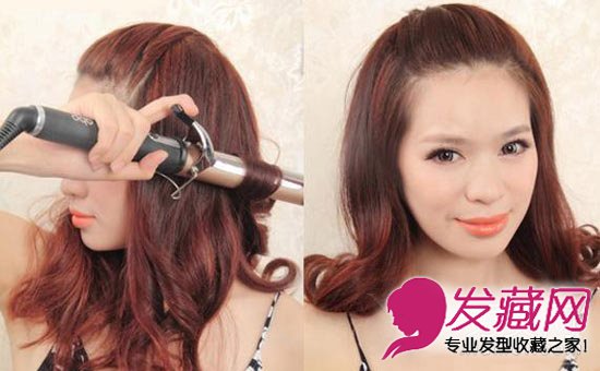 1、使用卷发棒,将头发分层向上卷,做出头发外卷的效果,