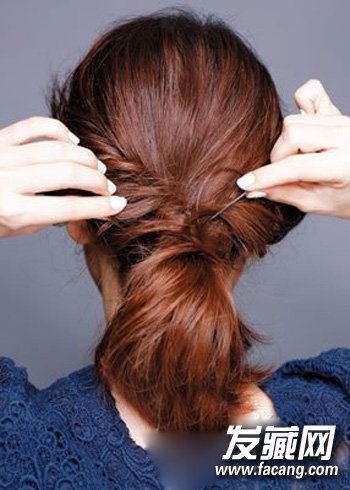 step3:再将发辫固定在脑后。