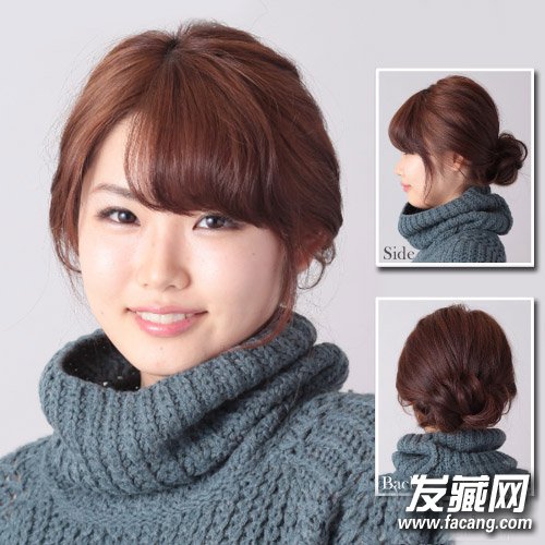 这款低花苞头温婉优雅,将头发挽起搭配毛衣更加好看,不会让整个