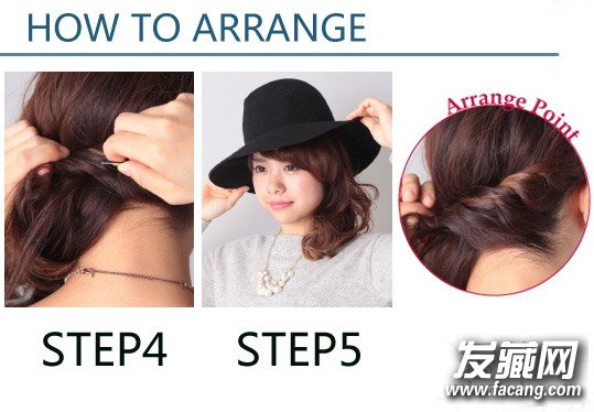 STEP 4:如扎发关键所示,右侧头发是通过不断添加发束扭转的方式编织的,之后用隐形夹固定。