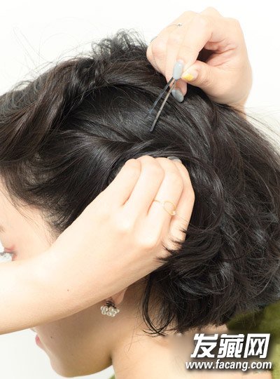 step4:依次取出脑后的头发扭转成发辫后固定即可。