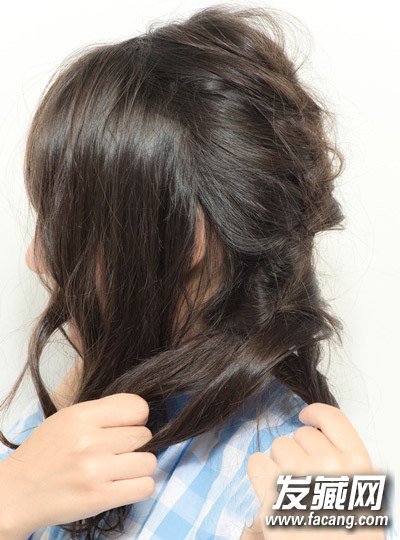 step2:取出脑后的头发编成蓬松凌乱的发辫。